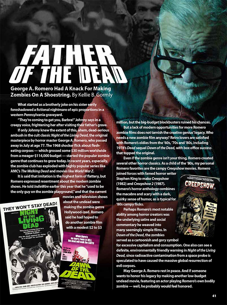 Have a howling good time with this spooky issue dedicated to hair-raising horrors in TV and film. The Wolf Man's Lon Chaney Jr. graces our cover, and two glossy pages pay tribute to other werewolf works that packed a bite. Plus, we check in with Hitchcock ingenue Tippi Hedron and horror hottie Elvira.